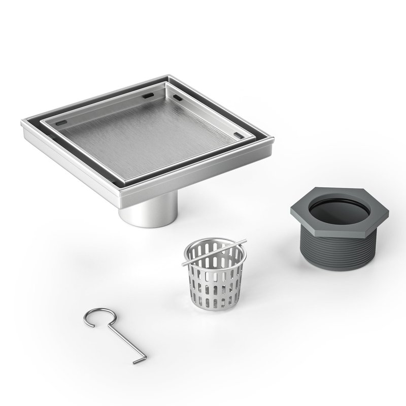Our floor drain designed with a 2-in-1 flat tiles grate. With this grate, you can choose a brushed stainless steel look, or cover with your own bathroom tile, which results in a completely invisible shower drain.