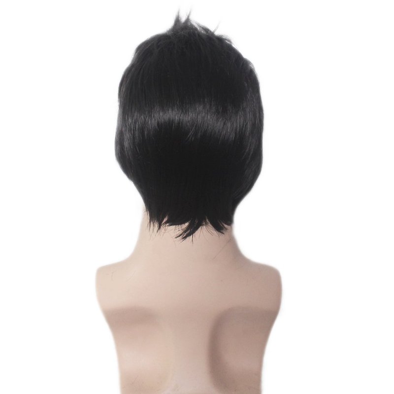 BERON Cool Men Boys Short Synthetic Wig for Cosplay Party Photo Come with Wig Cap (Black)