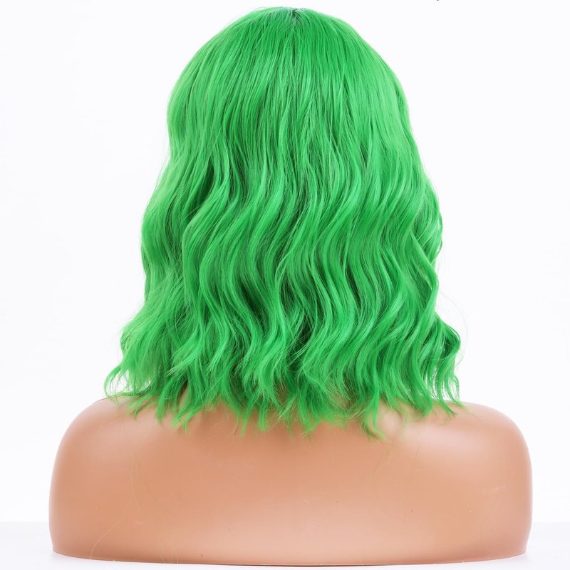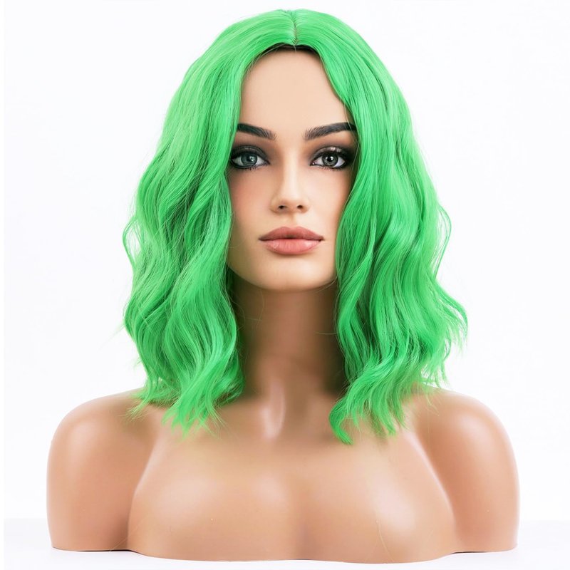 BERON Green Womens Wigs Short Curly Bob Wig Light Color Wavy Hair Wigs for Girls Middle Part Women's Synthetic Wigs Cosplay or Daily Used