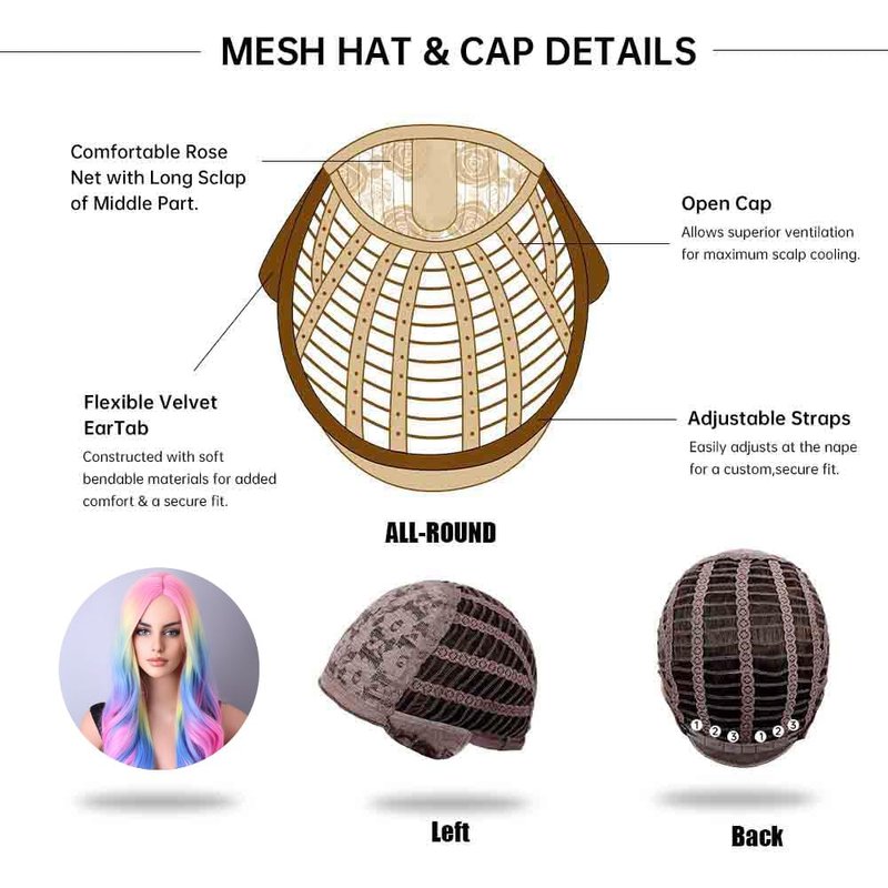 - Cap Size: About 22.5 Inches with Adjustable Straps, 2 adjustable straps could help you adjust the wig cap size less or more for about 1-1.5 inches.