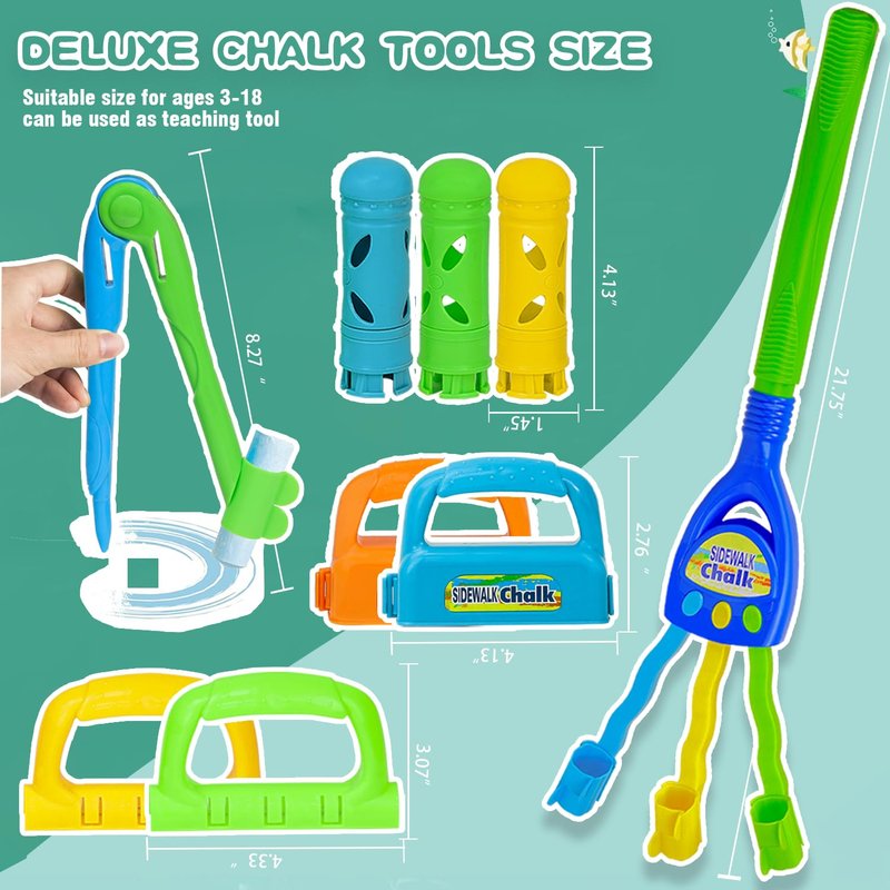 - 📦 【 FUN SIDEWALK CHALK HOLDER SET】:This set includes 1 rainbow rake, 1 compass holder, 2 transverse holders, 2 three socket holders, and 3 jumbo chalk holders. Each item allows users to explore their imagination through outdoor play. Chalks are not included.