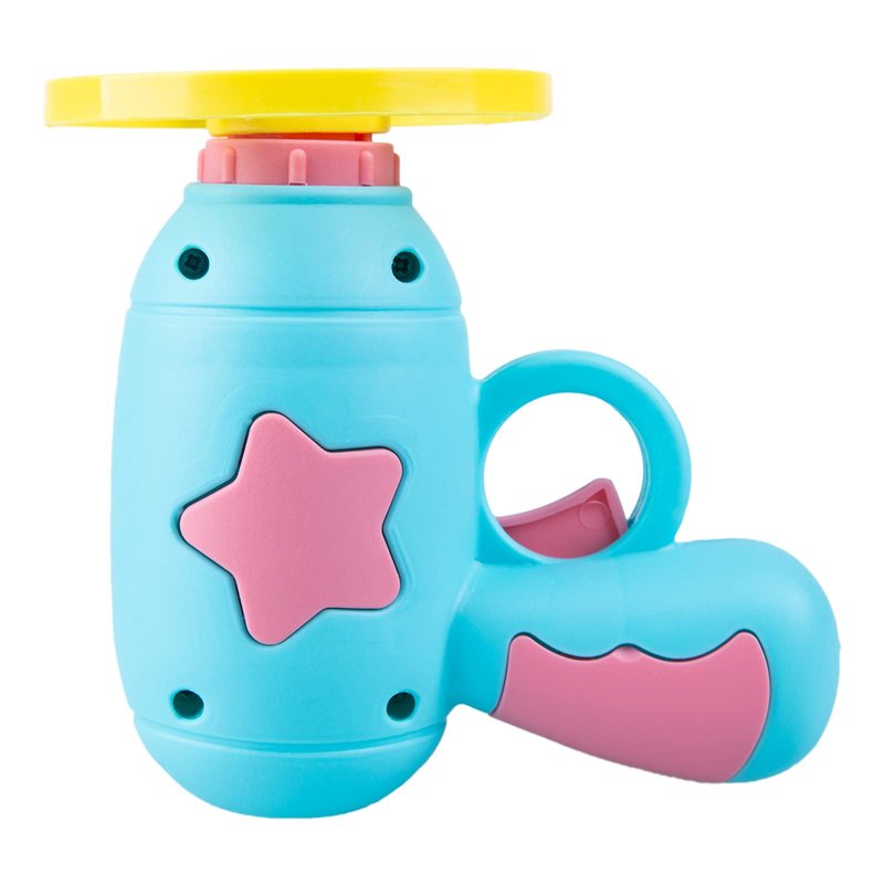 - [Unique Design] Flying saucers and gun toy are combined in a cool and novel way. It can bring a lot of happiness to children when they playing on the lawn. The product size: 10.5*5.5*13.5 cm.