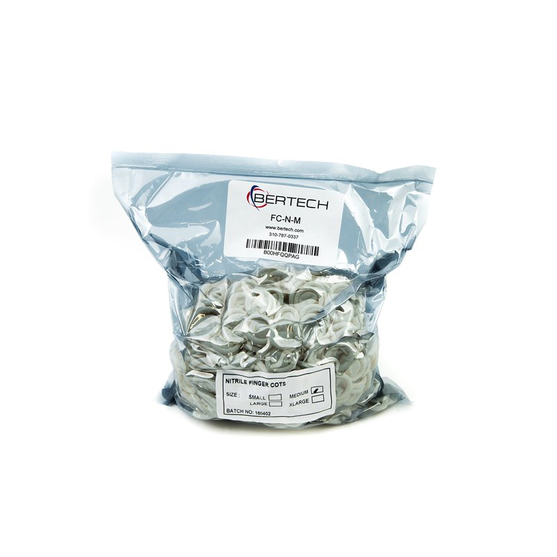 Bertech Nitrile Finger Cots, Powder-Free and Anti-Static, Medium, White (Pack of 720)