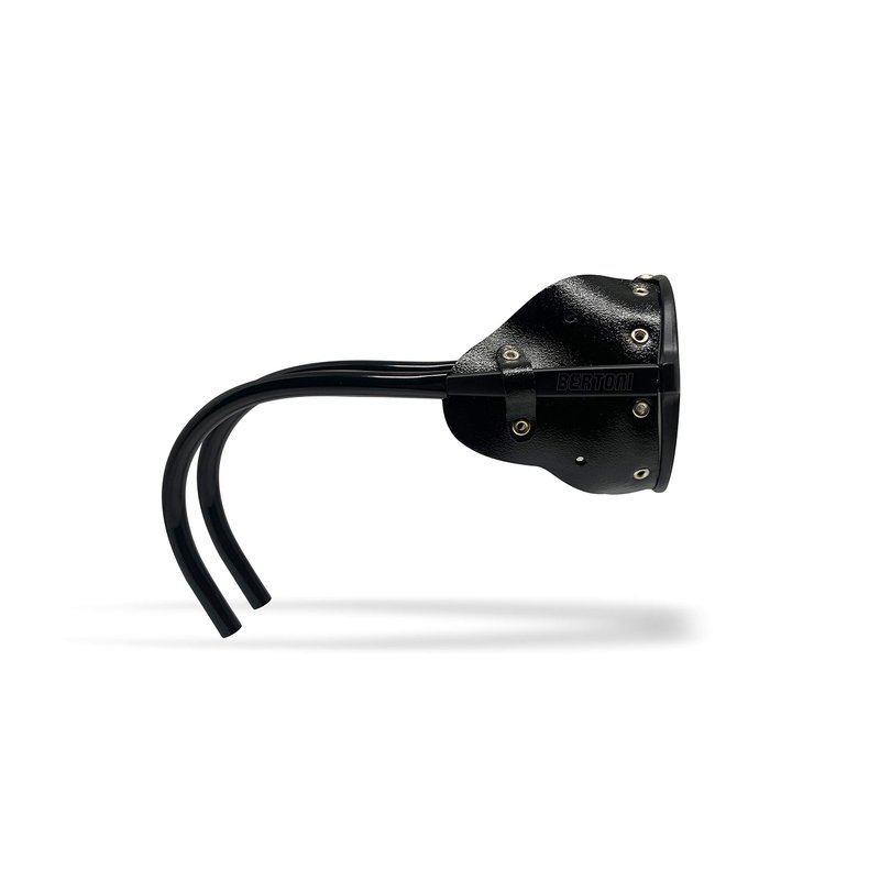 BERTONI Glacier Polarized Sunglasses for Mountain Hiking Trekking Ski mod ALPS Italy: Maximum protection in extreme conditions against wind, bad weather and hard sunlight with leather side shields with anti-misting aerators and removable nose-bridge protection . Dimensions (mm): Lens (W-H): 55-50, Frame (L-W-H): 138-138-52, Bridge 20 – Extremely light, weight: 20gr. (0,70 oz). Polarized antireflection lens reduces reflections of horizontal surfaces like snow, ice, water - 100% UV protection. Available in 4 different polarized lens versions: Polarized Smoke with blue mirror coating ( VLT 11%, blocks 89% ) - Polarized Brown ( VLT 14,1%, blocks 86% ) - Polarized Smoke with green mirror coating ( VLT 11%, blocks 89% ) - Photochromic Polarized Smoke that adjusts to the brightness (VLT from 32% to 12%, blocks from 68% to 88%). Curved, wrapping, flexible arms hold securely making grip at the tip of the arms : keeps the sunglasses from slipping providing comfortable fit that doesn't stick to hair. Includes: case, soft pouch made in microfiber for cleaning operations , elastic cord, cartoon case.