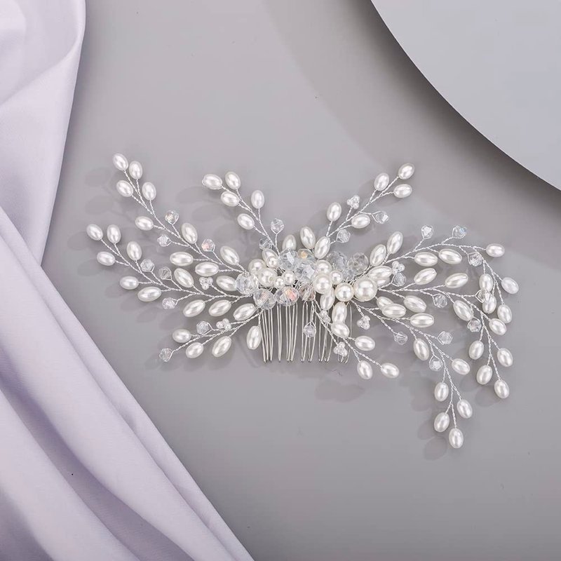 BERYUAN Bridal Hair Comb for Bride Bridesmaid Pearls Beads Hair Comb SILVER