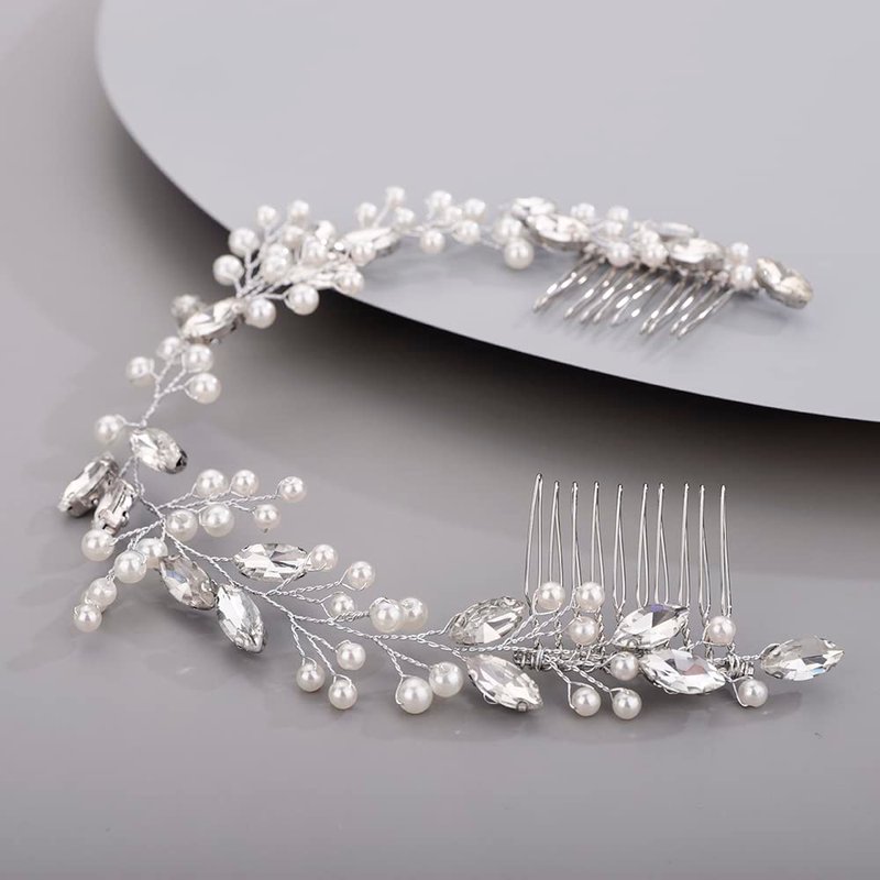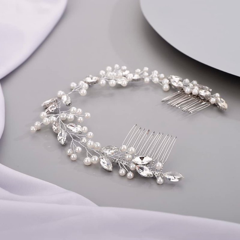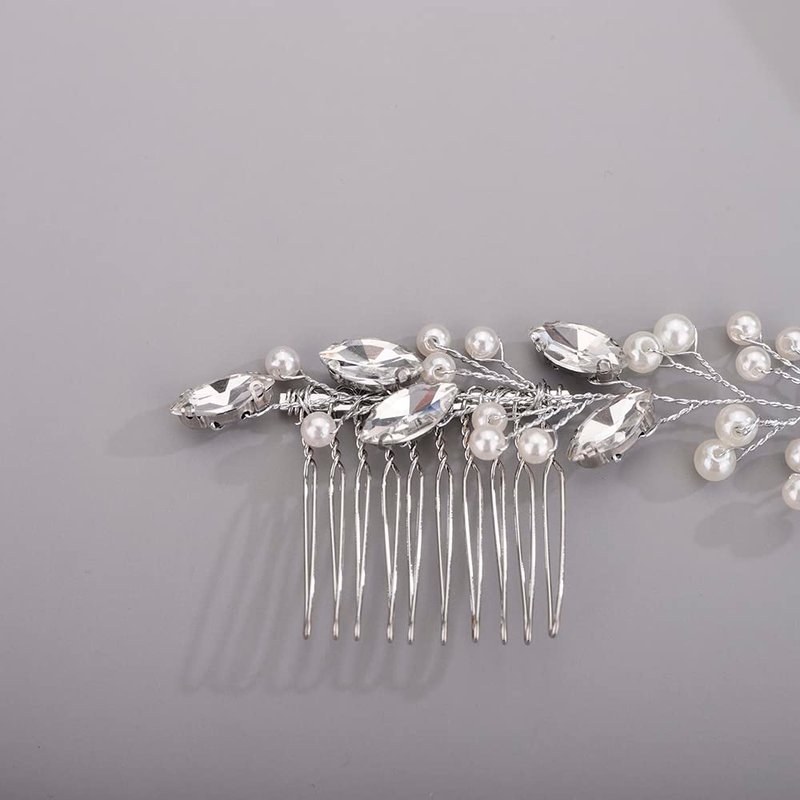 BERYUAN Hair Vine for Women Bridal Hair Comb for Bride Pearls Crystal Hair Comb Slide SILVER