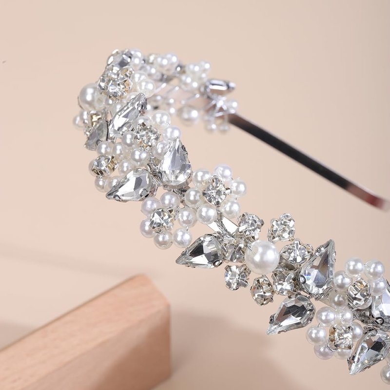 BERYUAN Wedding Bridal Pearls Flower Crystal Headband Pealrs Crystal Rhinestone Wedding Hair Accessories Silver Bride Headband Wedding Headpiece for Brides Bridesmaid (silver)