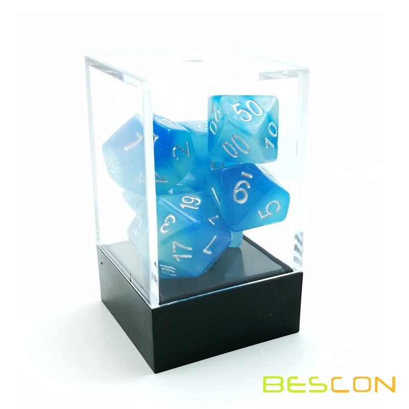 - Bescon Gemini Glowing Polyhedral Dice 7pcs Set ICY ROCKS, Luminous RPG Dice Set d4 d6 d8 d10 d12 d20 d%, Brick Box Packaging