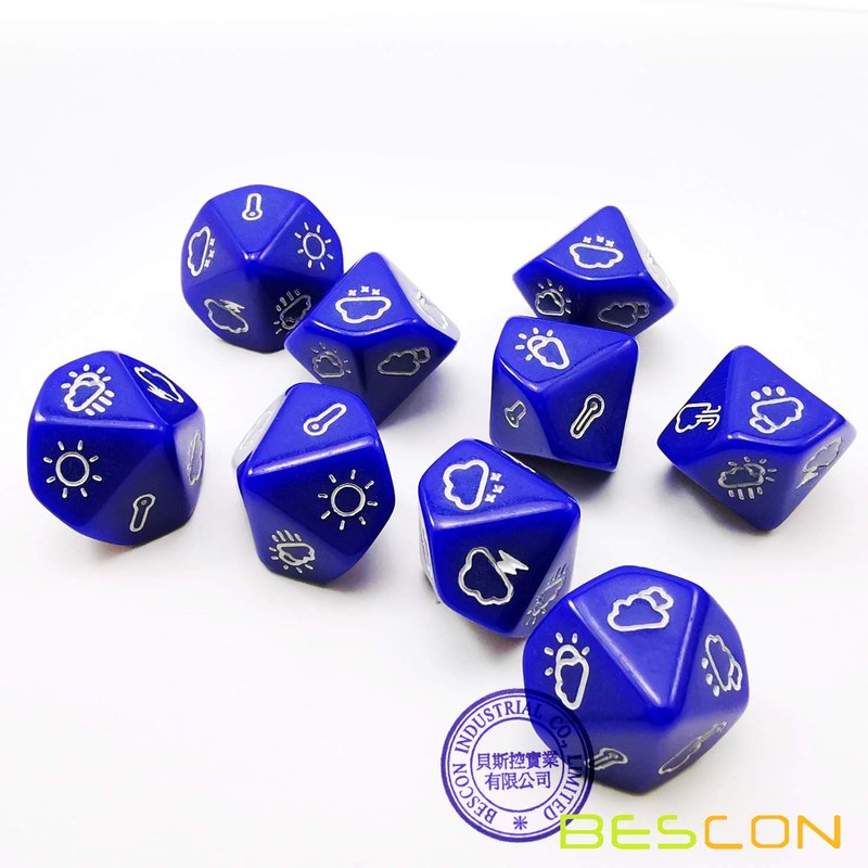 Bescon's Emotion, Weather and Direction Dice Set, 3 Piece Proprietary Polyhedral RPG Dice Set in Blue, Green, Yellow