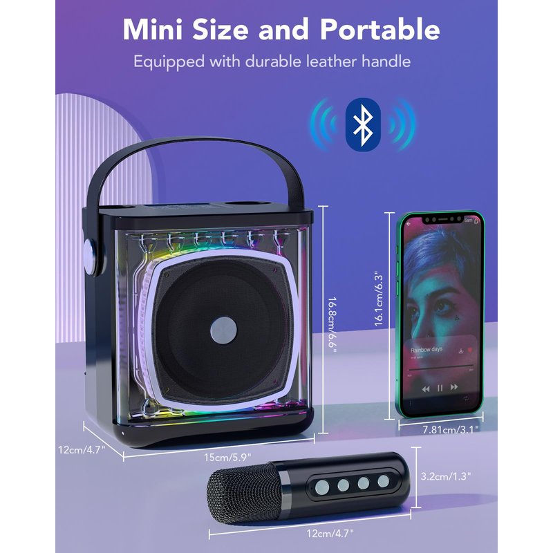 - 【PORTABLE AND EFFORTLESS TO USE】This cute karaoke machine not only adopts the latest bluetooth 5.0 chip, but also supports tf card, flash usb and aux-in connection. its compact nature makes it ideal for impromptu karaoke, letting you sing anytime, anywhere, and effortlessly replicating the excitement of a karaoke bar.