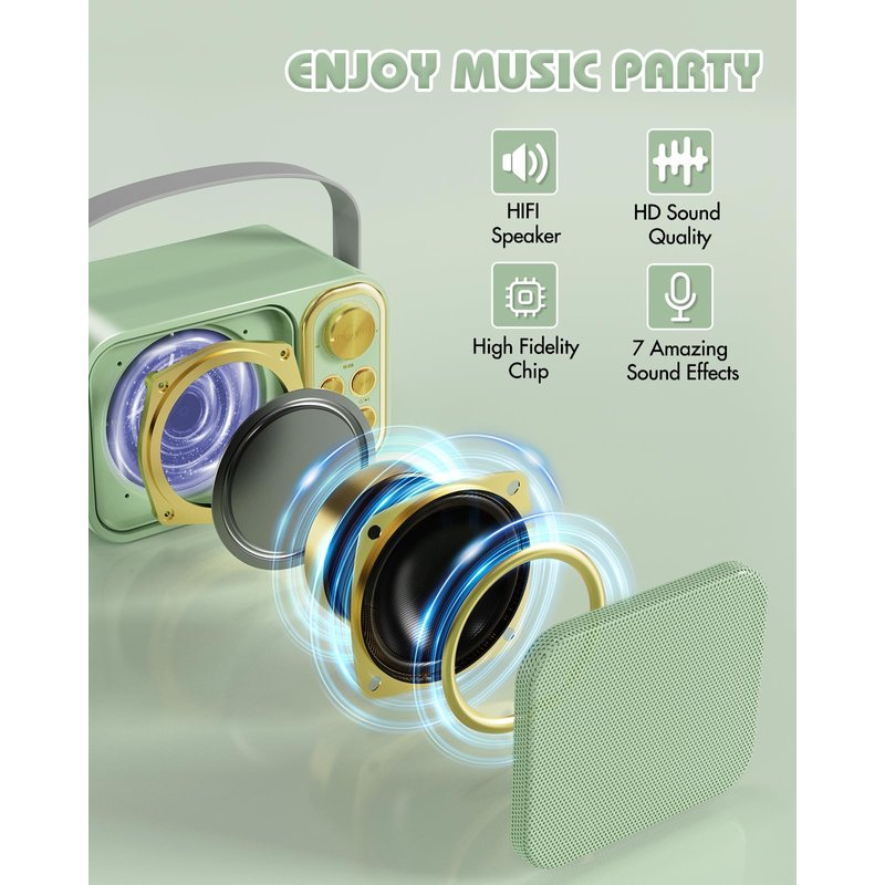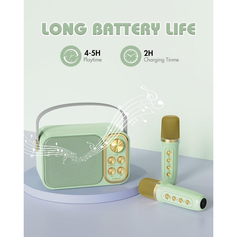 BESCOST Mini Karaoke Machine for Kids Adults, Portable Bluetooth Speaker with 2 Wireless Microphones, Kids Karaoke Machine for Girls Boys, Toys Birthday Gifts for 3-12+ Years Old Toddler (Green)