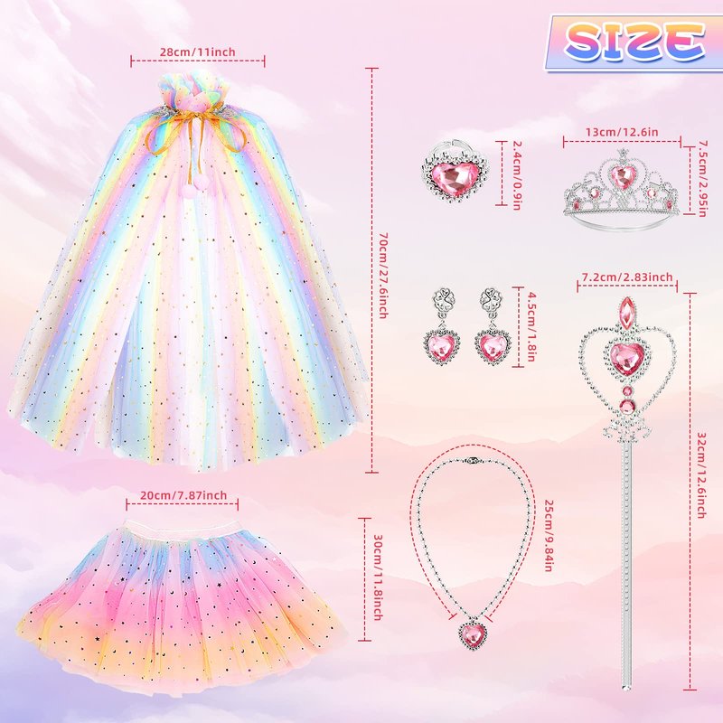 - Princess Dress & Princess Accessories for Girl Toys Age 4-5 - Offer Extra Grace and Luxury for girls. All jewelry accessories are styled to match the princess cloak, making the princess dress exquisite in every detail. Dazzling Princess Cape with Premium Fabric and Sequin Design, made of comfy sheer mesh fabric, breathable and durable. Wearing our shining princess dresses up for girls 4-6, be the most Glitter Little Princess on her birthday Halloween Christmas party & Dress-up Play Game Party
