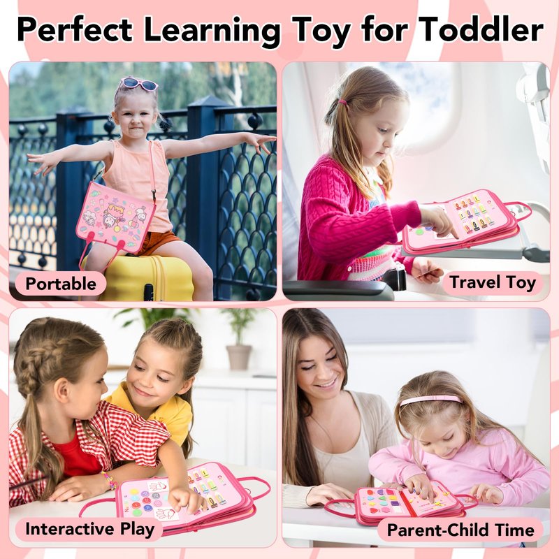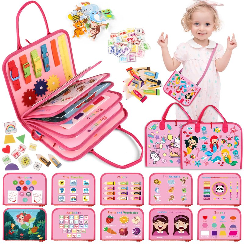 Busy Board for Toddlers 2-4, Sensory Board for Toddlers 1-3,Preschool Learning Toys Activity Books for Toddlers 1-3,Toddler Travel Toys Plane Car, Toddlers Toys Gift for Girls