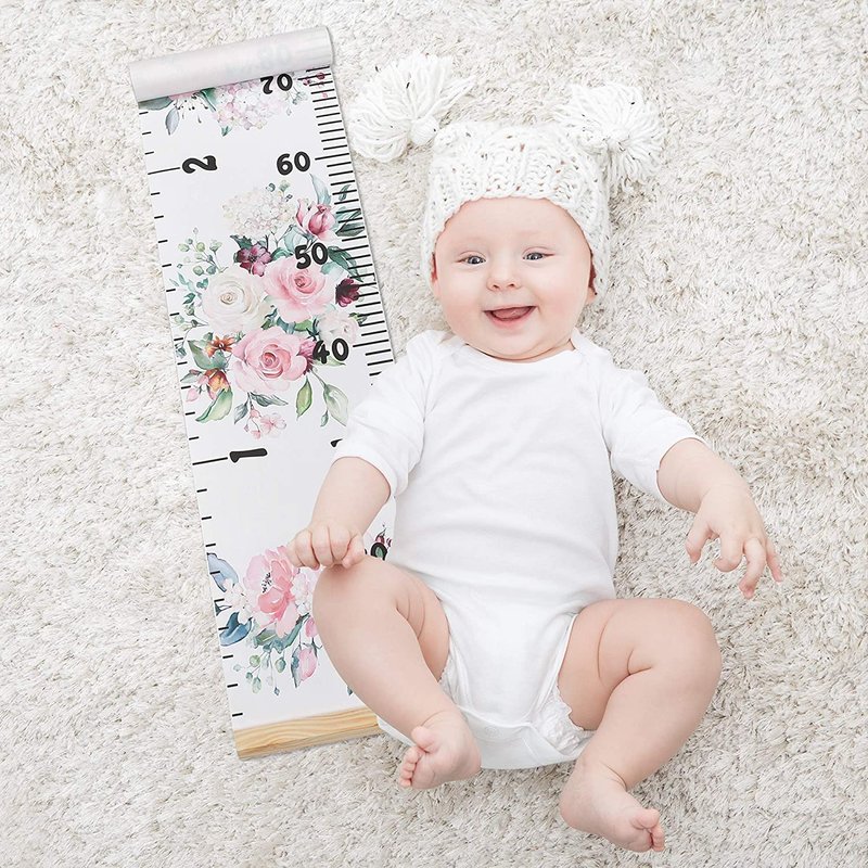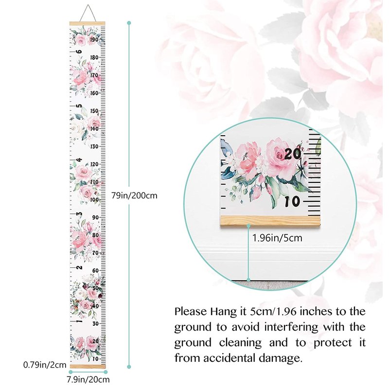 - BEAUTIFUL FLORAL PATTERN: Available in multi pink flowers, our hanging ruler is specially designed to decorate baby girl’s nursery room or play room. Item comes with 1 growth chart and 1 peel-and-stick hook for hanging