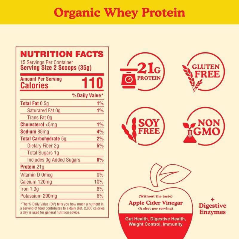 - 21g ORGANIC WHEY PROTEIN: A complete source of protein, containing all your essential amino acids - great for muscle recovery & appetite control absorbing easily