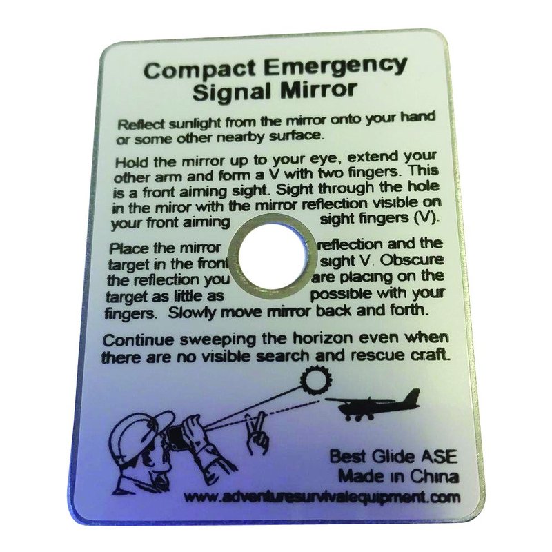 - The Best Glide ASE Compact Emergency Signal Mirror utilizes a hole in the center to aim your reflection. It also includes instructions printed on the back.