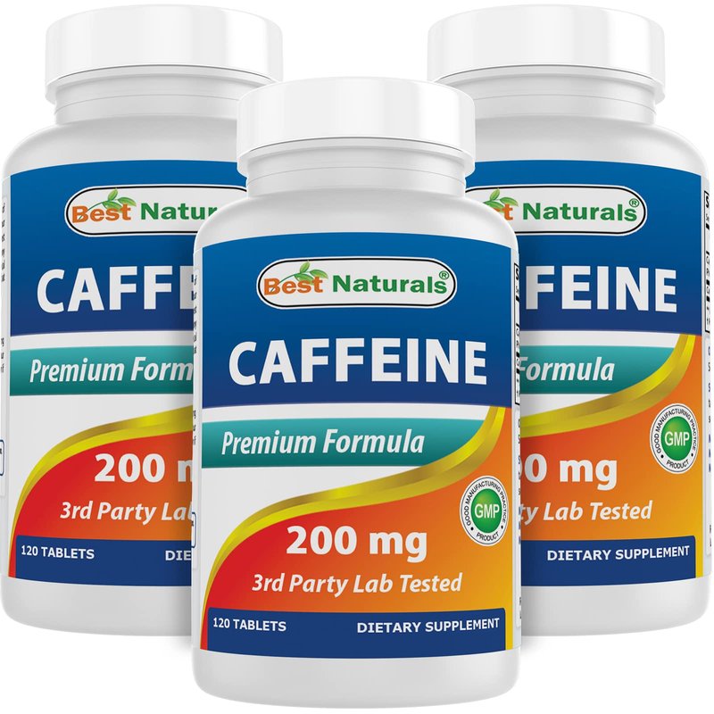3 Pack Best Naturals Caffeine 200 mg 120 Tablets (Total 360 Tablets)
