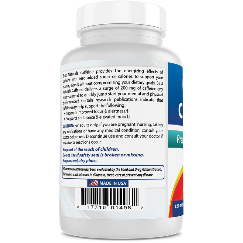 - 200 mg of Caffeine per Tablet - 120 Tablets per Bottle.