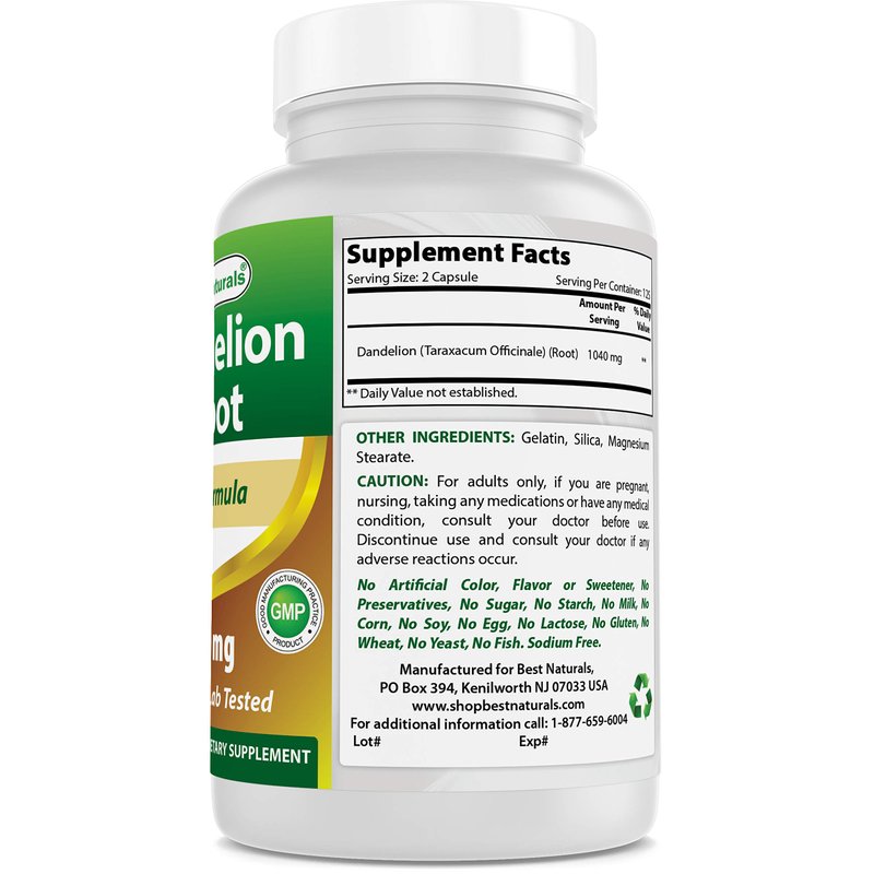 Best Naturals Dandelion Root 520 mg 250 Capsules