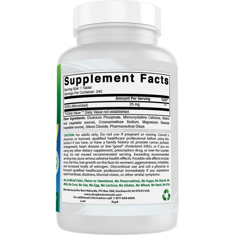 Best Naturals DHEA 25mg (Micronized) 240 Tablets - Pack of 3