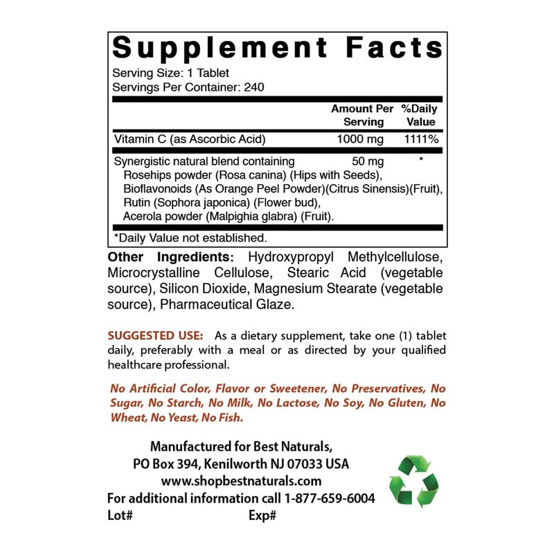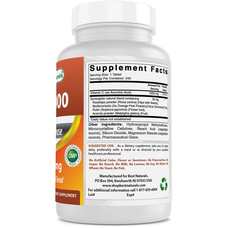 Best Naturals Vitamin C 1000 mg Tablets with Rose Hips, Berry 240 Count (Pack of 1)