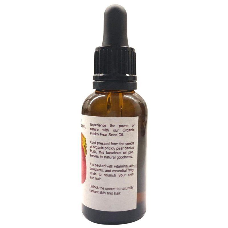 - 100% Pure Organic, Cold Pressed, Unrefined, Undiluted. BOTANICAL NAME: Opuntia Ficus-Indica; COUNTRY OF ORIGIN: Morocco; EXTRACTION METHOD: Cold Pressed, Unrefined; PLANT PART: Seeds; SCENT: Sweet, nutty scent; Color: Yellow to golden yellow liquid.; PACKAGED in a dark amber glass bottle with glass dropper.