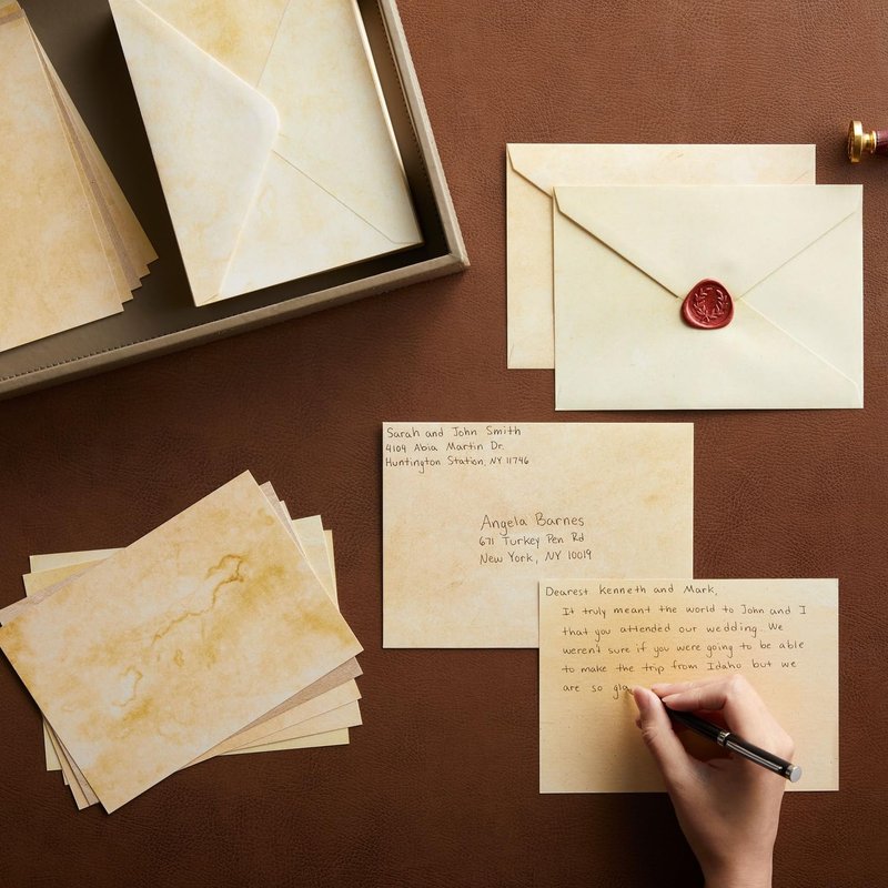 This set of 60 aged envelopes are perfect for any occasion. With an elegant antique look and feel, these cards and parchment envelopes 5x7 are sure to impress, and the included parchment paper envelopes make them perfect for letters, thank you notes, and invitations. Each notecard measures a generous 5 x 7 inches, giving you ample room to write thoughtful messages to your friends and family. And with 60 cards in this set, you'll have plenty of opportunities to send your best wishes for birthdays, weddings, baby showers, and graduations. Whether you're looking to send a personalized invitation for an upcoming event or want to say "thinking of you," these blank greeting cards with envelopes 5x7 are the perfect way to let your loved ones know that you care.