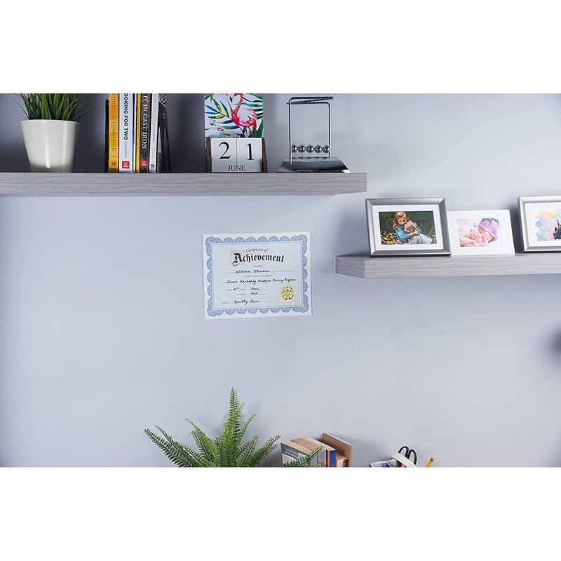 What better way to recognize great effort, achievement, and progress than with these prestigious recognition award certificates. Crafted with 95 GSM, high-quality paper and designed with an elegant blue scalloped floral border, these certificates are specially made for motivating employees and students. This fill in blank certificate paper is convenient to use. The gold stickers provide the finishing touch. Each certificate paper is Letter-sized, measuring 8.5 x 11 inches and each sticker measures 1.7 inches diameter. Start giving award certificates that will be cherished as keepsakes.