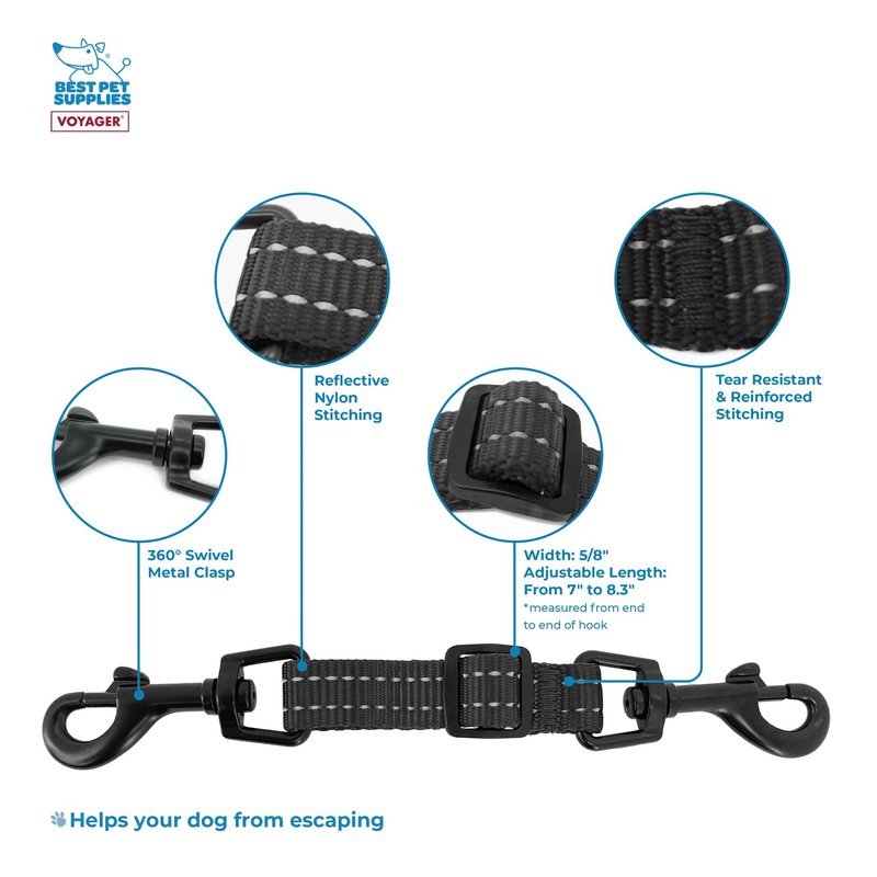 Best Pet Supplies Voyager Dog Collar Safety Clip with Dual Clasps, Collars and No Pull Harness Connectors, Training for Walking, Running, and Hiking, Safety Clip - Black