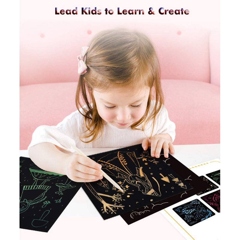 - 【High-Quality & Safe Materials】Our scratch paper and bamboo styluses are made from high-quality, non-toxic materials, free from unpleasant odors and harmful substances. Each sheet is crafted to be thick and durable, ensuring it won’t easily tear. Parents can rest assured that children can safely engage in creative activities with this set.