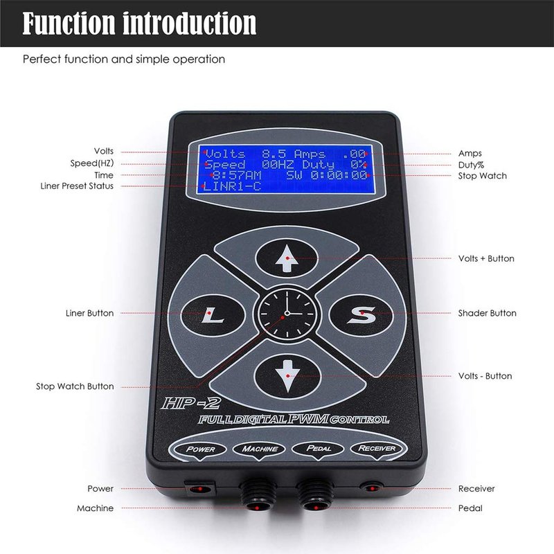 BestParts HURRICANE HP-2 Dual Intelligent Digital LCD Rotary Tattoo Power Supply Kit with Cord Fits for All Tattoo Machine Supplies