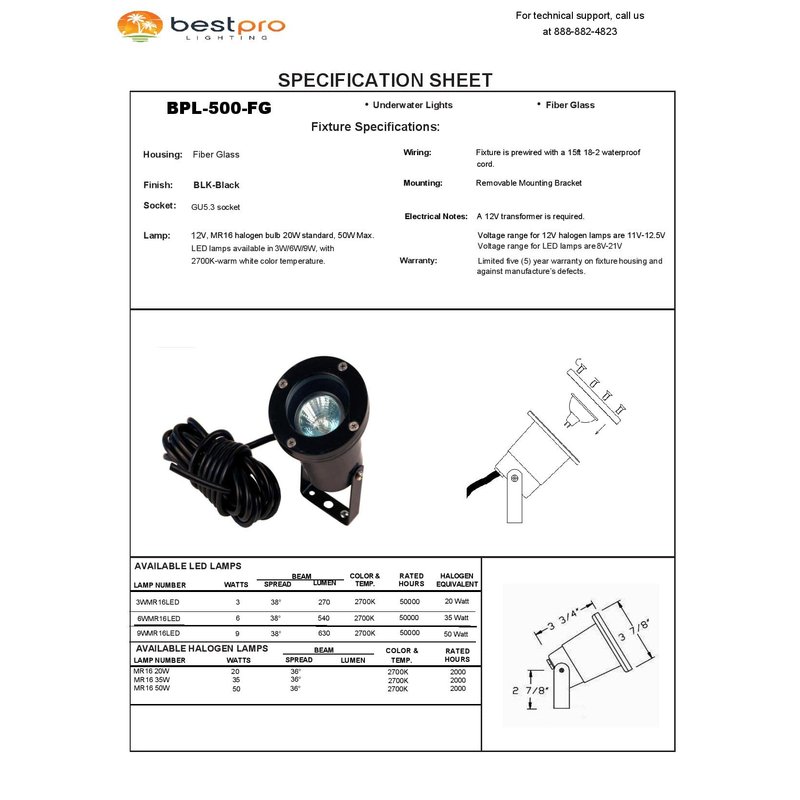 This professional grade LED Underwater Pond Light is designed to be used in underwater ponds, waterfalls or as an in-ground well light. It is completely sealed, and has a 180-degree swivel bracket. Best Pro Lighting LED Underwater Pond Light will provide a warm, glowing look inside your pond at night. Connectors and Wire nuts are not included and must be purchased separately. This fixture requires the usage of a Low Voltage (12V) lighting transformer (NOT INCLUDED) and cannot be installed to the main low voltage line without the use of connectors. Recommend to install to a brick or paver to keep the fixture under water when using in Ponds. The LED, MR16 Bulb will be included in the shipping package.