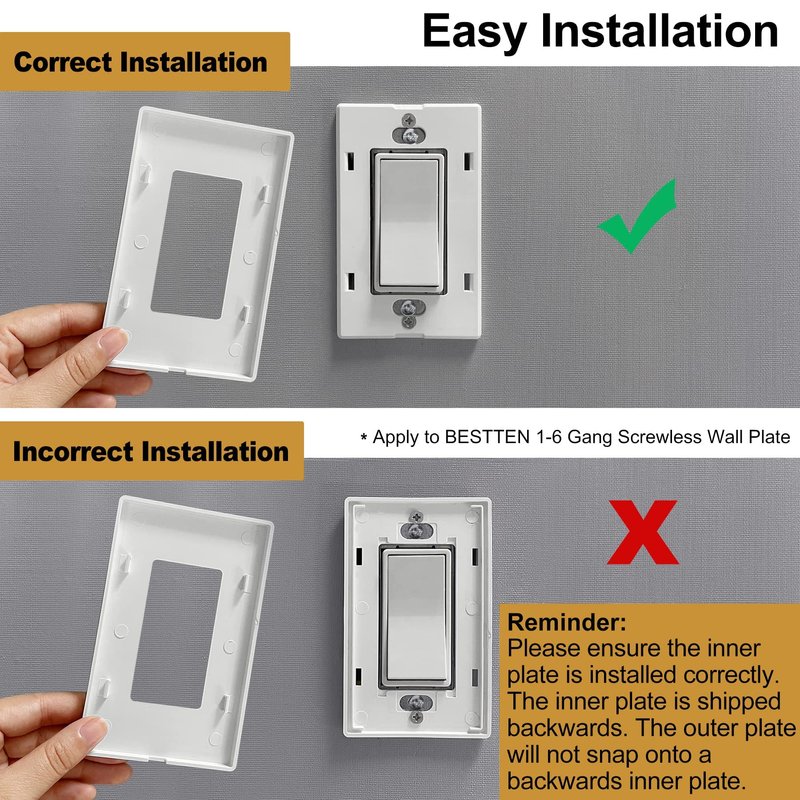 - Compared to sandwich designs from other brands, BESTTEN screwless wall plates have no seam along the edge for a smooth look that won't collect dust