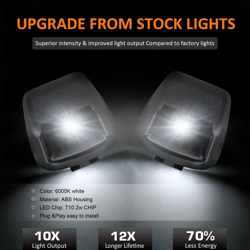 - ✅【Super Bright LED Bulb 】:These license plate lights housing with 6000K LED bulbs are much brighter than stock lights.10X Brighter Than OEM Light Bulbs safety at night drivinng and give your vehicle more modern look.
