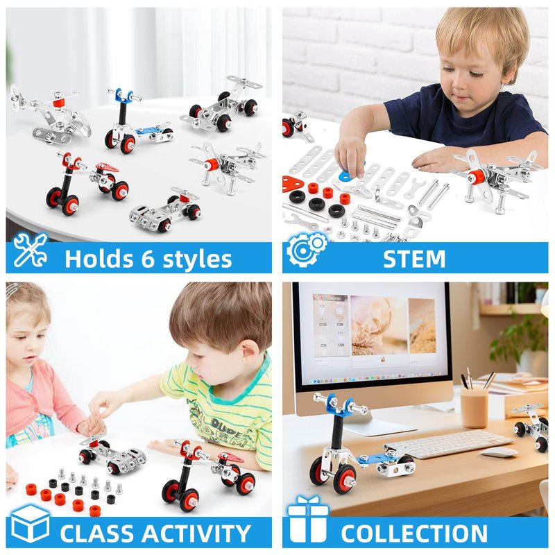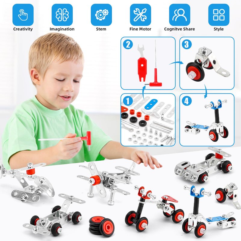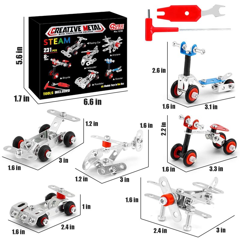 - Metal Materials: Vehicles & Airplane model kit includes 231 parts with bolts, nuts, small screwdrivers, wrenches and more. The metal is rust-resistant and of good quality, making it a quality Building STEM Projects Erector Set Toys.