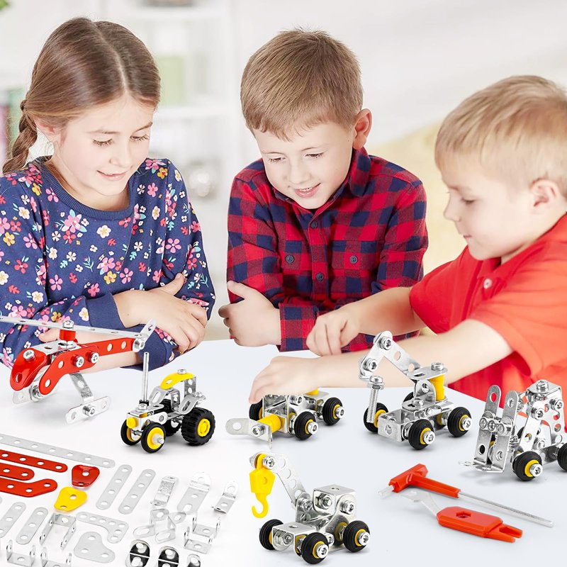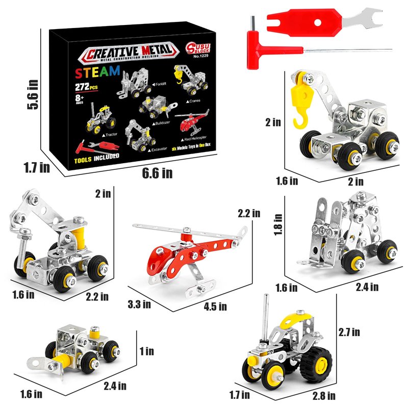 - Metal Materials: Construction Vehicles & Helicopters model kit includes 272 parts with bolts, nuts, small screwdrivers, wrenches and more. The metal is rust-resistant and of good quality, making it a quality STEM Projects Erector Set Toys.
