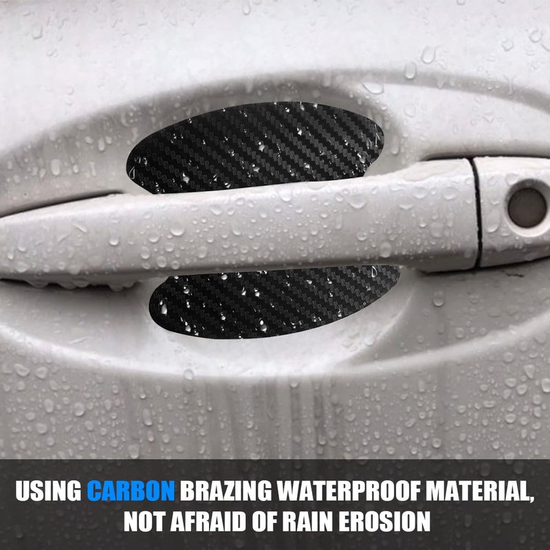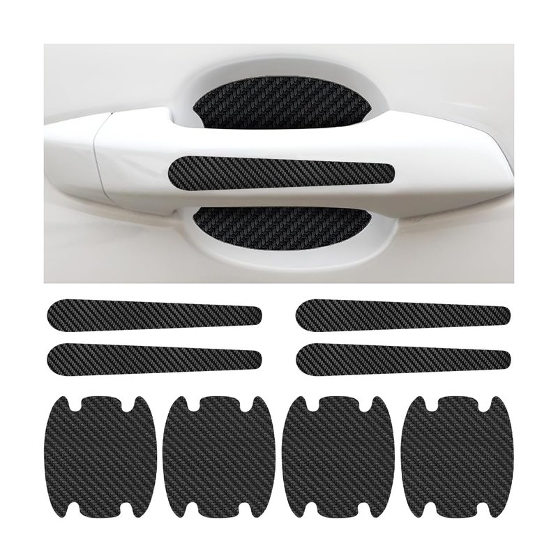 - 【Package Includes】: You will get 8 carbon fiber car door handle stickers. 4 pieces of bowl stickers (car door handle cups) + 4 pieces of strip stickers (car door handles) for 1 car. Bowl sticker size is 3.54" x 3.27", strip sticker size is 5.12" x 0.63".