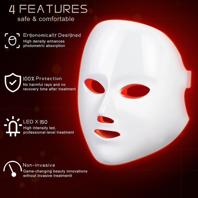 Betgod Led Red Light Therapy for Face, 7 Color Facial Mask Blue Red for Face Facial Skin Care(White)