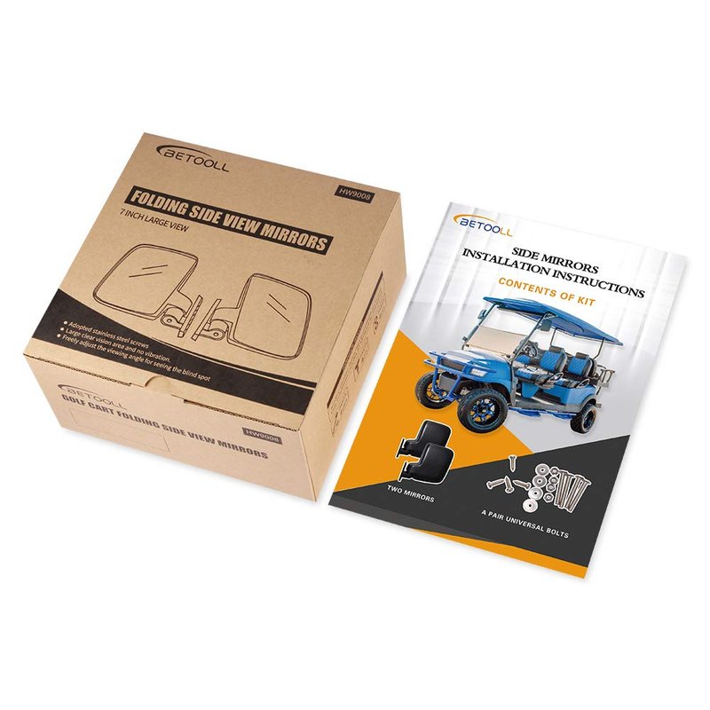 BETOOLL HW9008 Golf Cart Folding Side View Mirrors For Club Car, EZGO, Yamaha, Star, Zone Carts