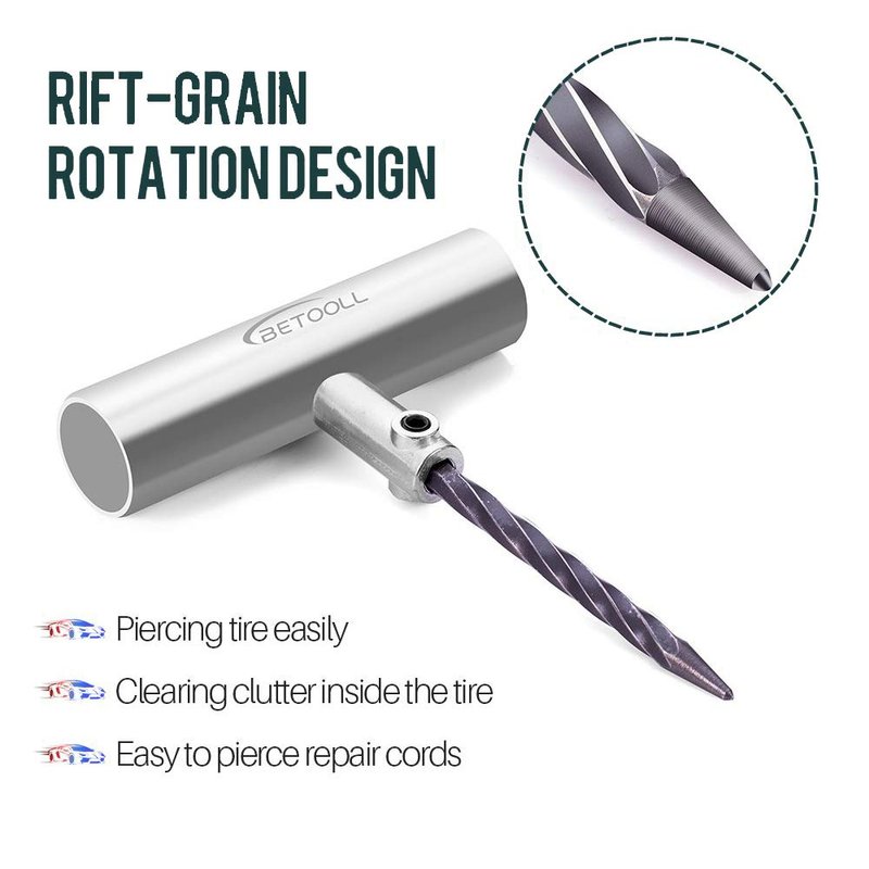 - PLUG AND GO--- “T”handle is made of heavy steel, provides more steering power to insert the tire, making it easy to repair any tube-less tire perforations anytime, anywhere.