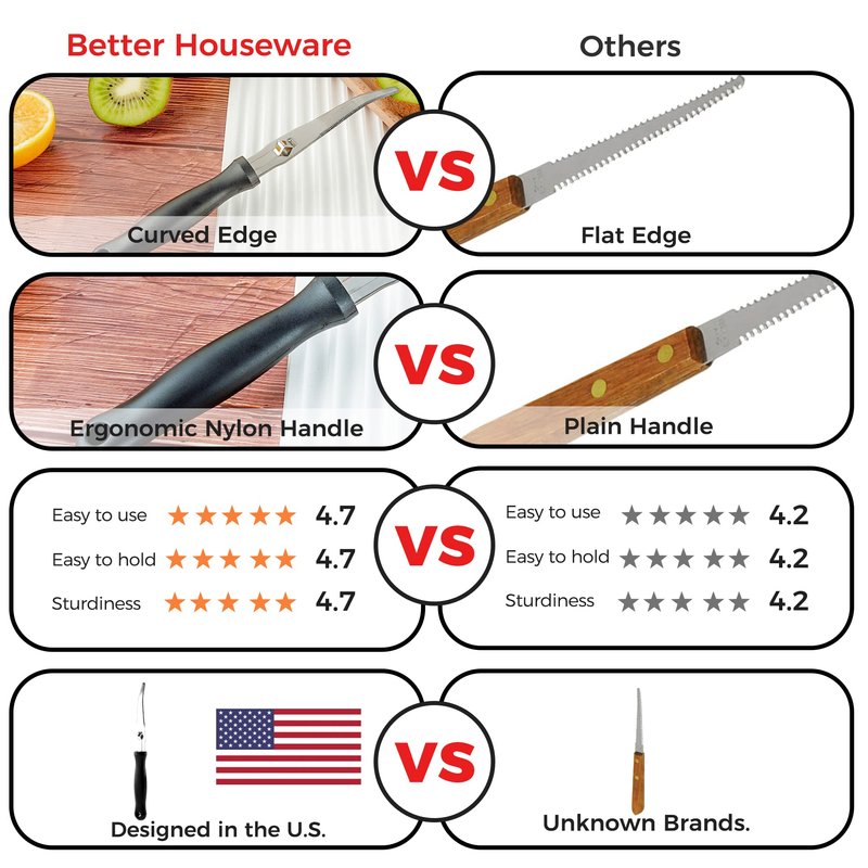 Better Houseware Grapefruit Knife curved serrated Stainless Steel Knife w/Nylon Handle, Serrated Edge grapefruit peeler knife, kiwi knife, lemon zester, Dishwasher Safe | Kitchen Utensils