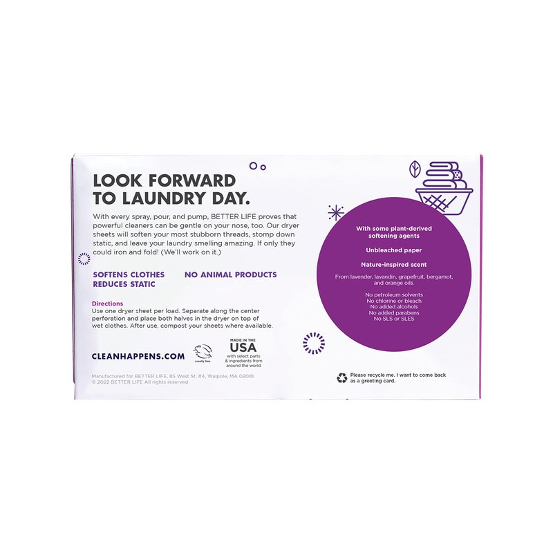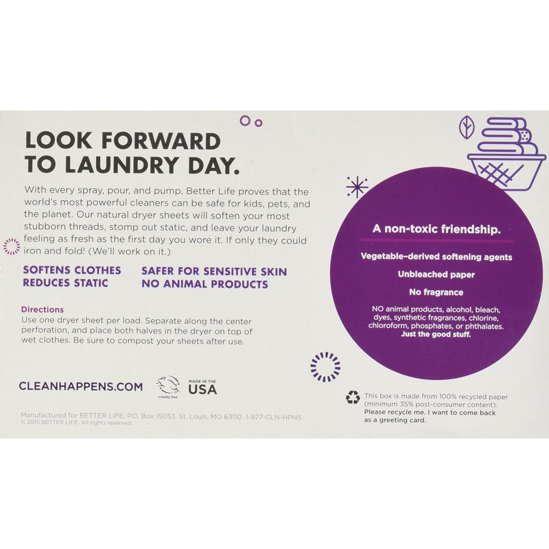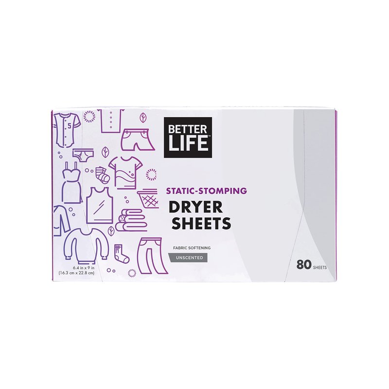 Better Life Natural Dryer Sheets, Unscented, 80 Count