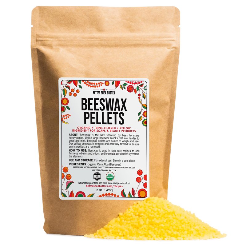 Better Shea Butter Organic Beeswax Pellets | Use it to make Candles, Food Wraps, Furniture Polish, Lip Balms | Food Grade, 100% Pure, Yellow Beeswax Pastilles | 1 LB (16 oz)