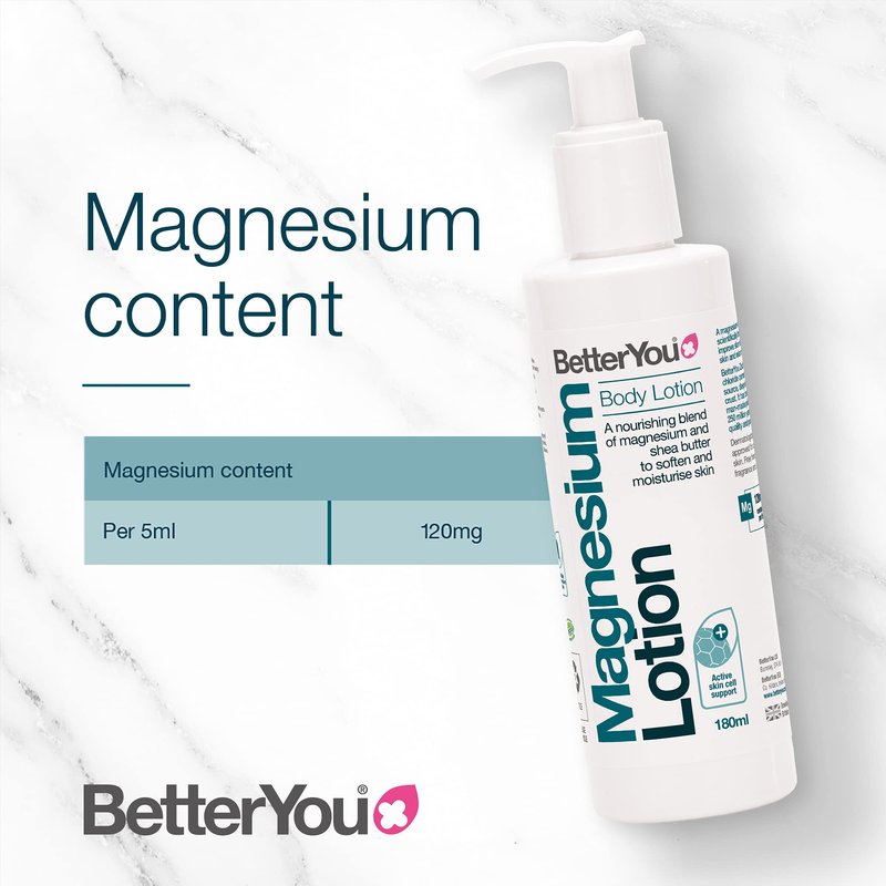 An incredibly effective, lightweight formula containing BetterYou Magnesium Oil and a blend of skin-kind ingredients. Use daily to keep your skin nourished with this essential nutrient. Designed for all-over application, magnesium absorption commences when massaged into the skin. Locking in moisture while providing effective magnesium absorption. The lotion combines shea butter, cocoa butter, coconut oil and vitamin E to hydrate the skin and improve elasticity by repairing skin cells. Free of parabens and animal cruelty, the Magnesium Body Lotion is bound to leave your skin looking radiant.