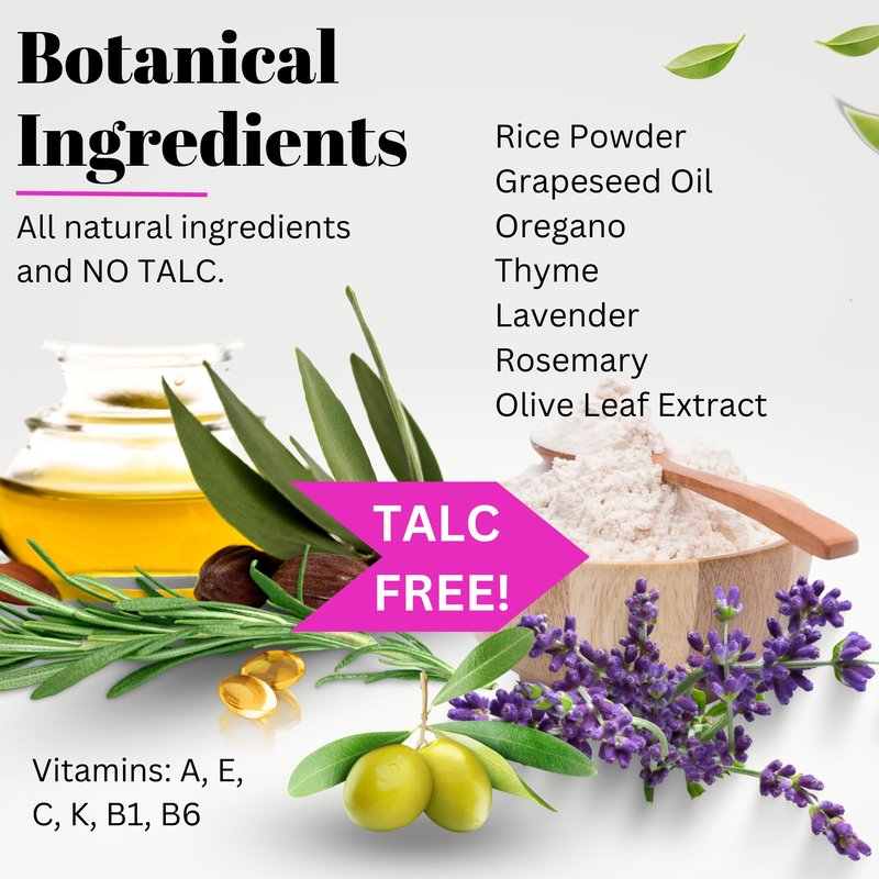 Made with organic botanicals and essential oils such as Grape Seed, Oregano, Thyme, Olive Leaf, Rosemary, Lavender, Goldenseal and Vitamin E.