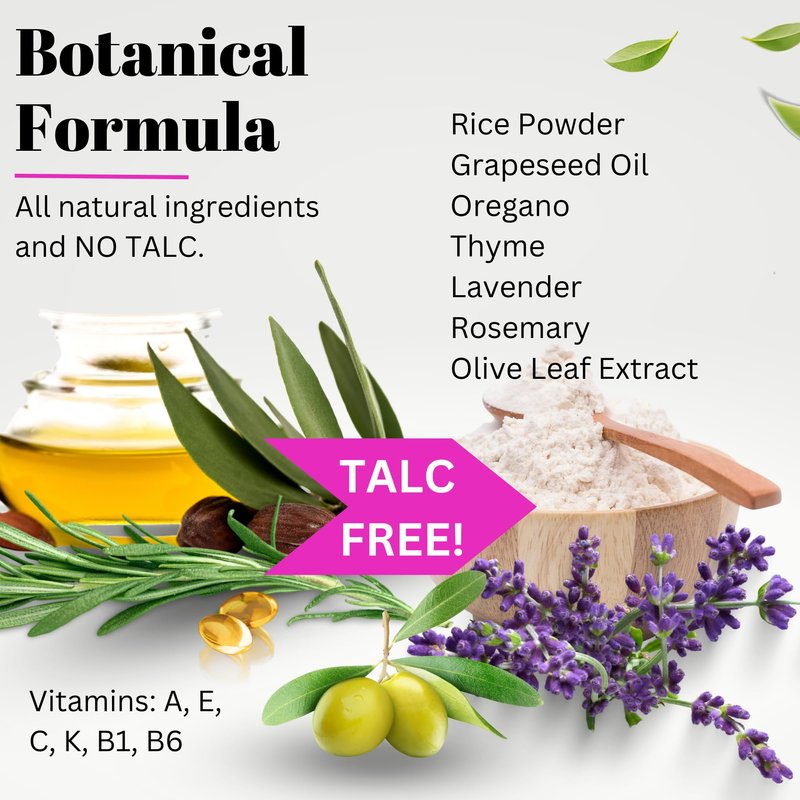 Made with organic botanicals and essential oils such as Grape Seed, Oregano, Thyme, Olive Leaf, Rosemary, Lavender, Goldenseal and Vitamin E.