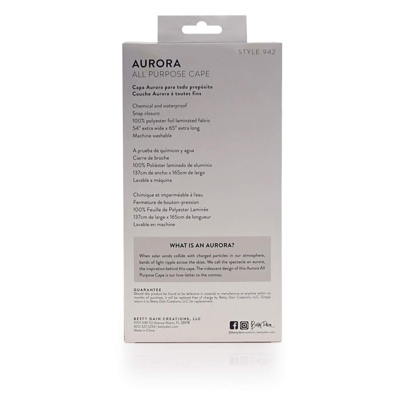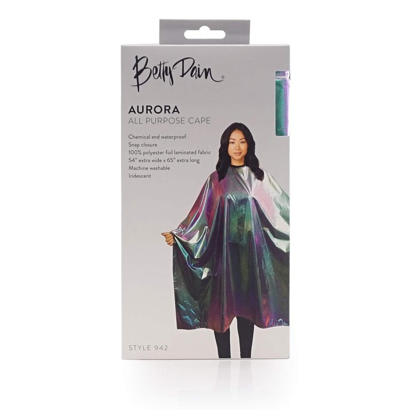 Betty Dain The Aurora Collection All Purpose Cape, 54" W x 65" L, Water & Chemical Proof, Machine Washable, Adjustable Snap Closure, Matches Other The Aurora Collection Products, Holographic Design