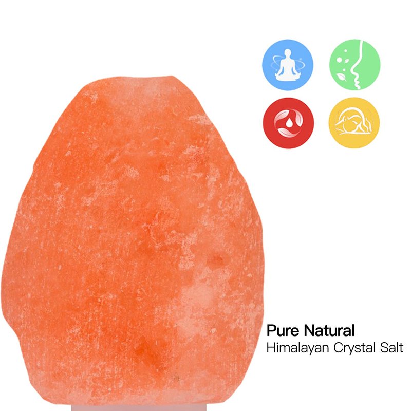Heat from the bulb causes the salt to emit negative ions which are scientifically proved to purify air, improve breath and reduce allergy and asthma symptoms. These negative ions also combat electro-smog caused by the electronic devices.