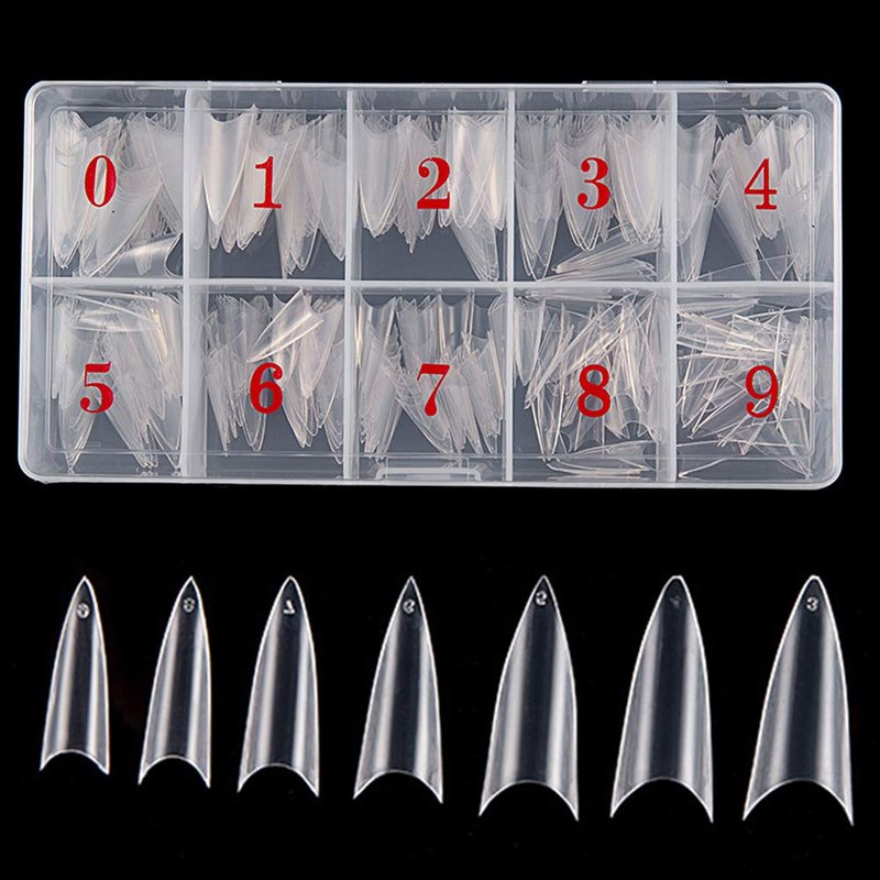 Beuniar Stiletto Nail Tips 500Pcs Short Sharp Ending False Acrylic Nails Tip Half Cover 10 Sizes with Box for Nail Salons Home DIY (Clear)
