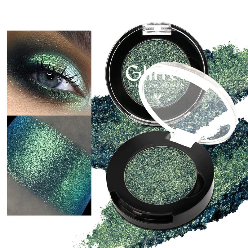 - 【Sparkle Metallic Chameleon Eyeshadow】: The glitter eyeshadow palette has a green tint with gold sparkle. Sparkly eyeshadows can perfect for present a quite dimensional or has multicolored glitter flashy makeup.
